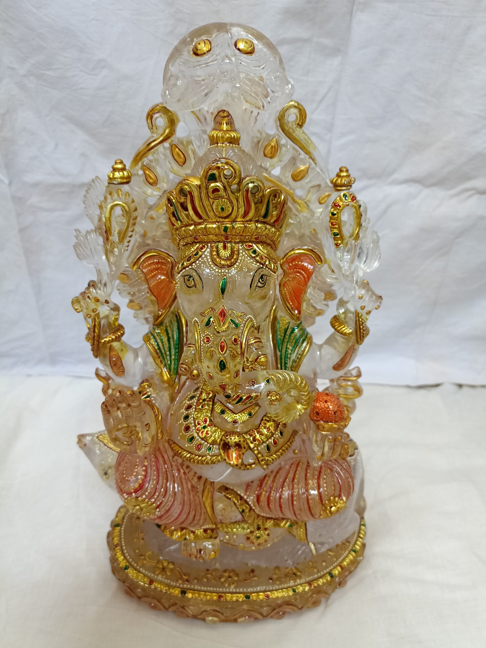 Handcrafted & carving on sphatik crystal with golden colour touch